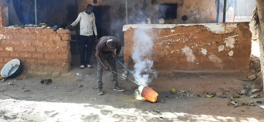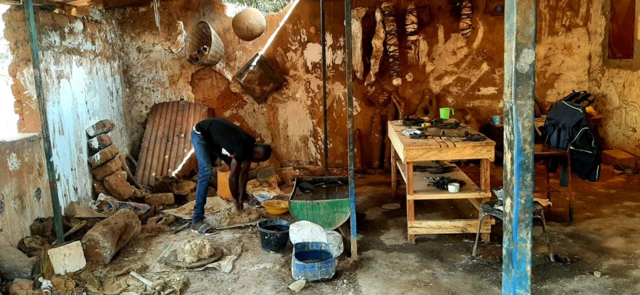 Chaque année, pendant quelques mois, Firmin retourne à la source, dans son atelier de création au cœur du vieux quartier de Bobo Dioulasso afin de réaliser ses œuvres et de former des jeunes.